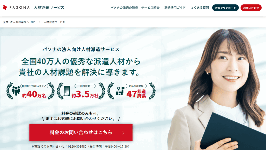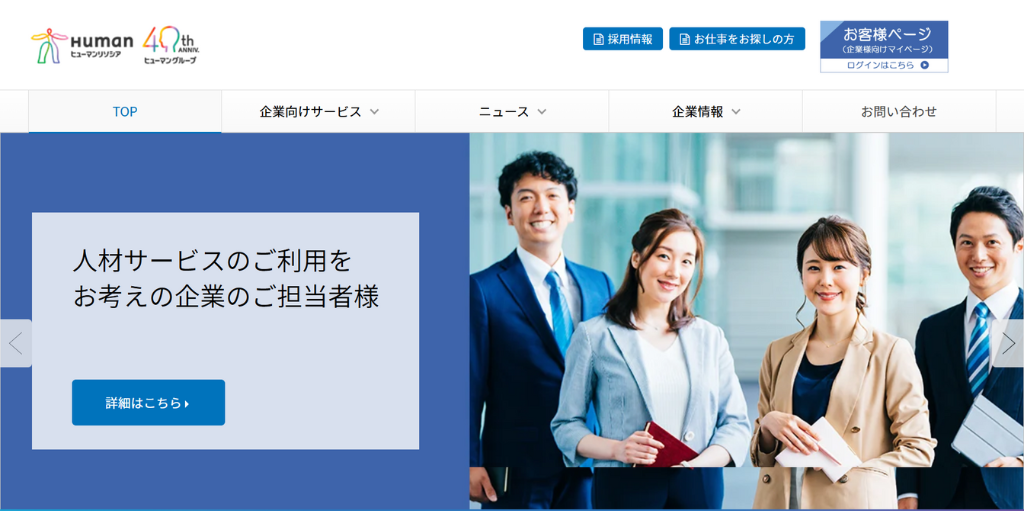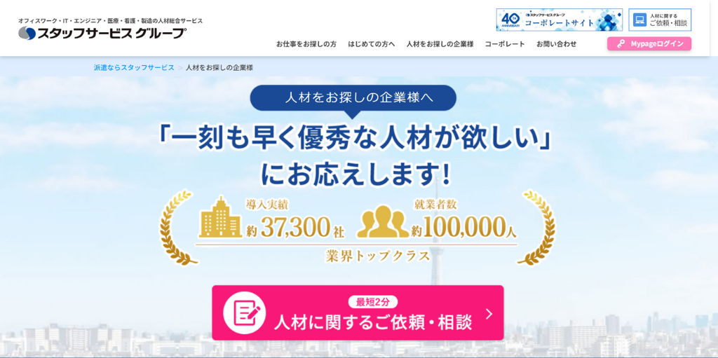 まずは、大手企業でも活用例が多い、幅広い職種に対応している総合人材派遣会社です。