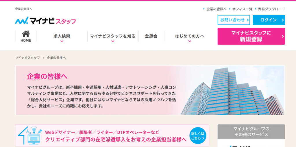 マイナビスタッフは、株式会社マイナビワークスが運営している人材派遣会社です。