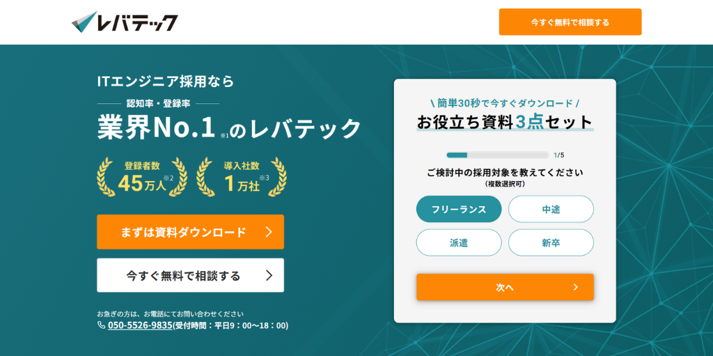 取引企業数約1.7万社(2023年4月時点)、登録スタッフ数は100万人を超えており、対応職種は営業・販売、電話業務、オフィスワーク・事務系、ITエンジニアなど幅広くカバーしています。