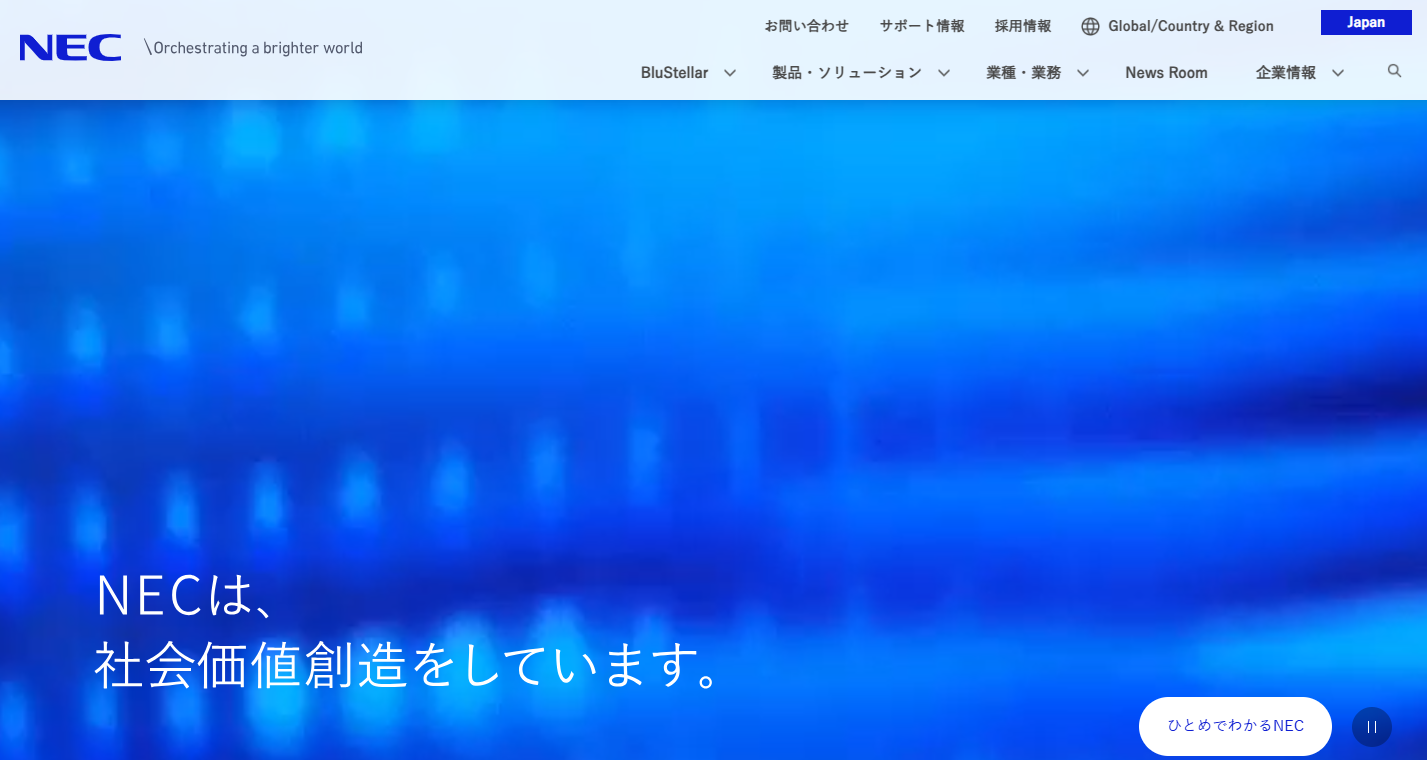 NECは社会インフラ系システム開発に強みを持つ総合ICT企業です。